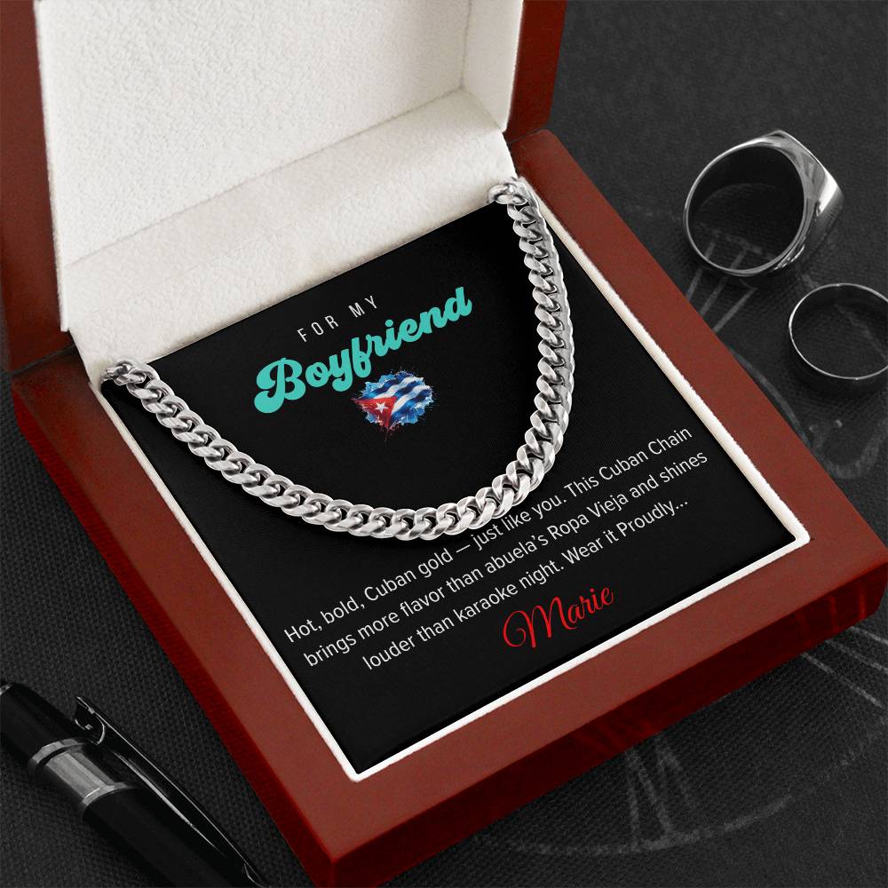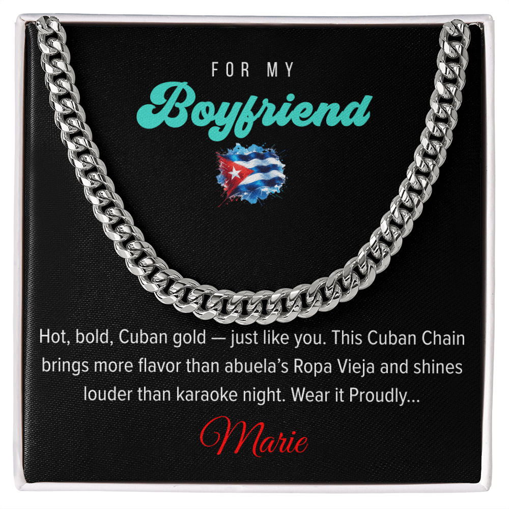 Regálo para a esa Persona Especial en tu vida - tu Novio, tu Padre o tu Hijo... una clásica Cadena Cubana, un regalo que resalta su estilo. Nuestra Cadena Cubana es el detalle perfecto para cualquier ocasión; Cumpleaños, Celebraciones especiales durante el año, o simplemente para demostrarle cuánto significa el para ti.